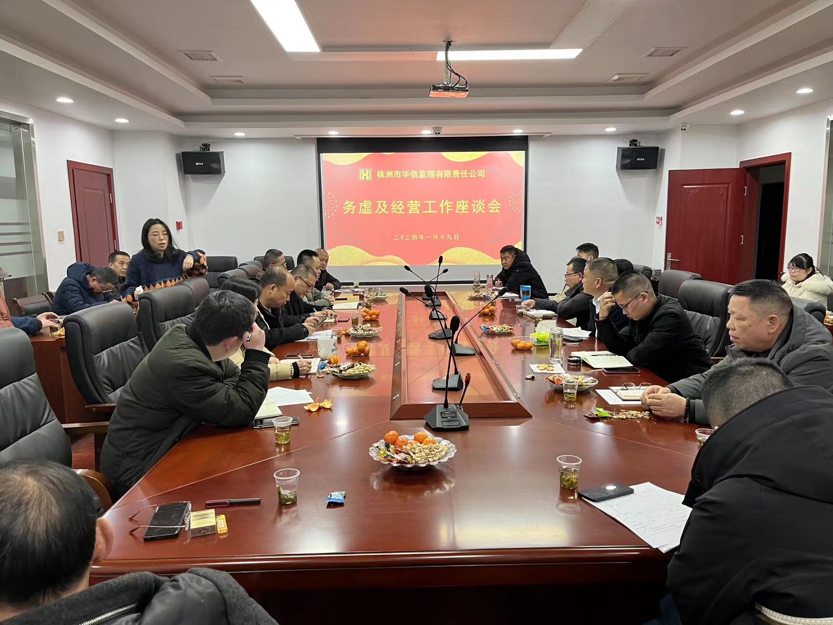 株洲市華信監(jiān)理管理團隊30余人于2024年1月19日在公司會議室召開務(wù)虛及經(jīng)營工作座談會。公司董事長、總經(jīng)理周國杰主持會議。